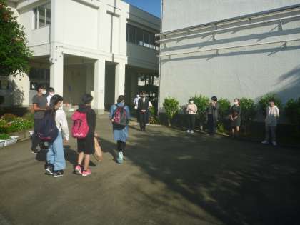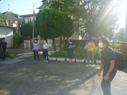 今朝は、学級委員と生徒会役員が8時に集合して、元気よく「おはようございます」を。明後日2日に生徒会役員選挙の立候補者も一緒に行いました。