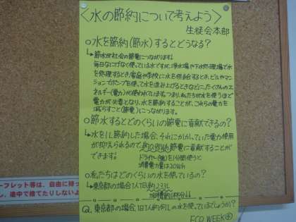 廊下の壁には、生徒会役員が作ってみんなに呼びかけているものや、水を節約しようとECOに関するものや、クイズなど、ふと足を止めて読んでみたくなる掲示物が沢山あります。