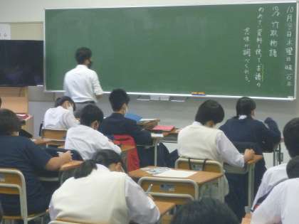 1年生国語は、「竹取物語」冒頭の古文の歴史的仮名遣いを現代仮名遣いに。