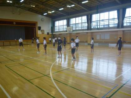 2年生体育は、クラスごとに運動会の練習で、大繩とバトンパス。
