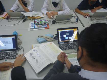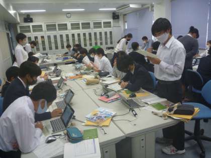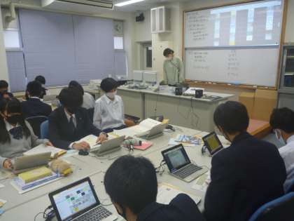 哲学の「自然とともに生きていく」の単元で、5R(リペア・リユース・レンタルリース・リサイクル・リヂュース)の再確認をし、これから自分たちが出来ることを考え、ロイロノートに記入し、そのあと、グループごとに自分の考えを発表しています。