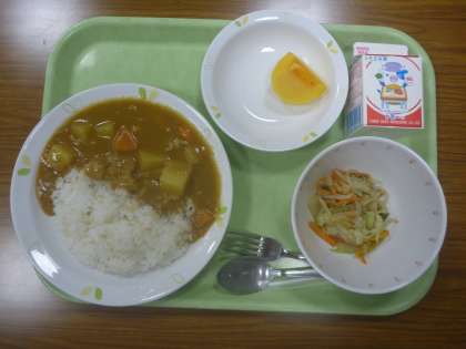 ポークカレーライス・こんにゃくサラダ・柿・牛乳です。
