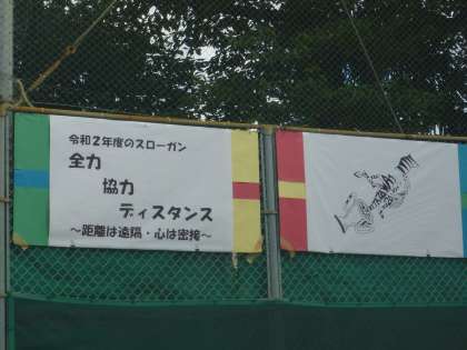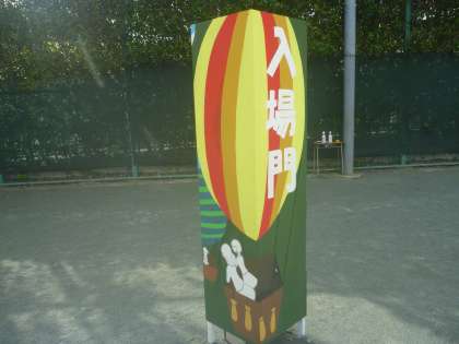 今年のスローガン。入退場門は美術部が作ってくれました。