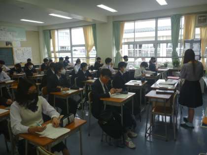 5・6時間目、2年A組B組は、1時間ずつ、第1商業高校と晴海総合高校の先生の授業を受けます。