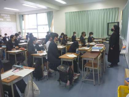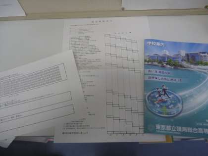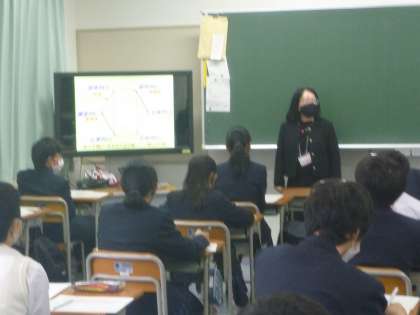 A組は、晴海総合の先生の授業です。「自分を知ろう」ということで、配布されたプリントに各自解答して、何系が得意か?技術系?などの分析の見方を教わっています。