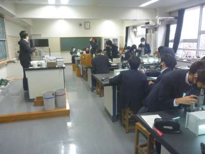 3年生理科は、一人一台の顕微鏡で、作った食塩がどのようになっているか見ていました。