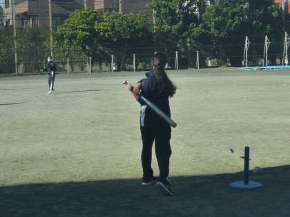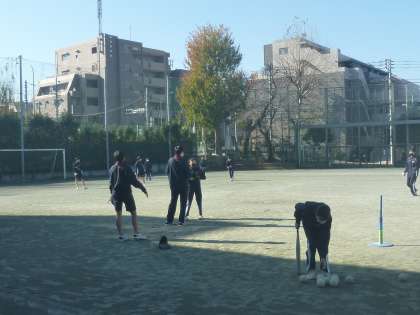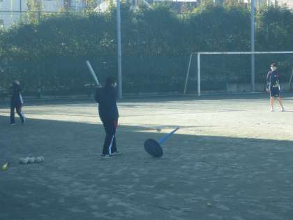 今日はバットでボールを打つ練習とそれを取る練習です。