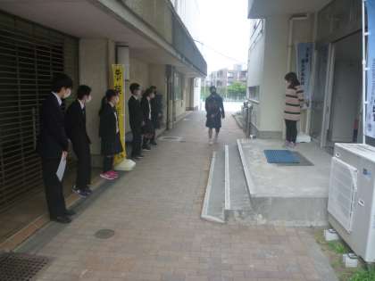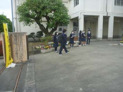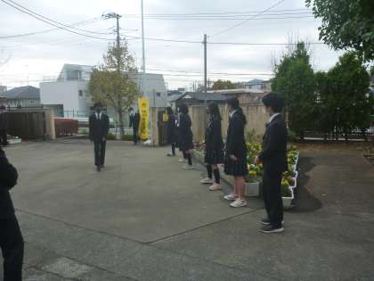 今朝は曇って気温もかなり低く寒いですが、保健給食委員と生徒会役員が元気よくあいさつ運動を行いました。