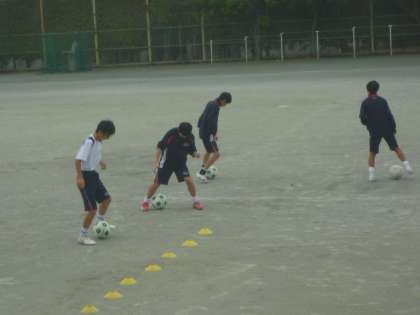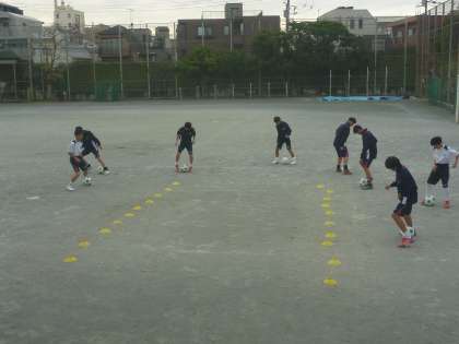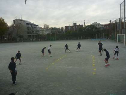 寒さに耐えながら?校庭で、まずは真剣にウオーミングアップをしています。