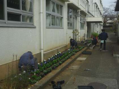 JA東京中央会から頂いたお花を主事さんたちが綺麗に植えてくださいました。