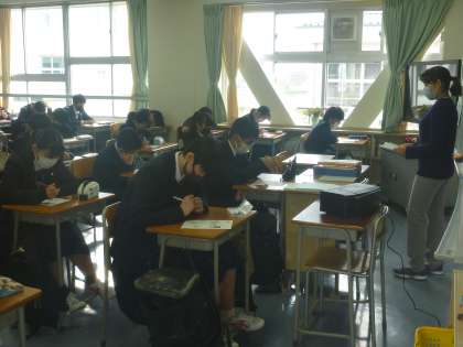 2年生英語は、リスニングをしながら、プリントの問題を。