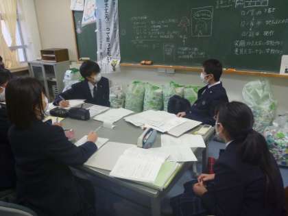 先月の反省を出し合って、今月はどうするか話し合っています。生徒会は、ピカピカ計画について詳しく話し合っています。