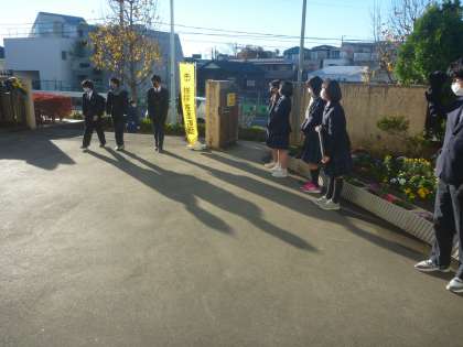 今朝も8時から、放送委員と生徒会役員が正門に立ち、元気に「おはようございます」とあいさつ運動を行いました。