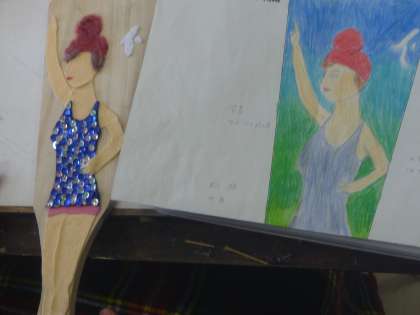 2年生美術は、自分が下絵を描いたものを様々な素材を使って、羽子板を作っています。楽しみです。