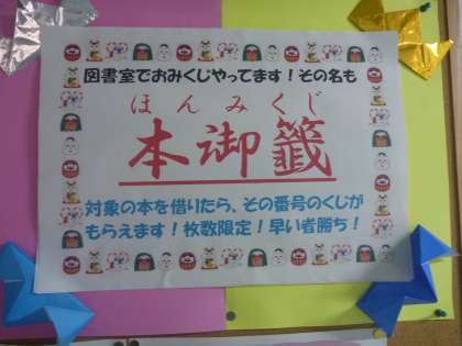 1月は、図書室でおみくじがひけます。おすすめの本を借りて、おみくじをひきましょう。年初めの運試ししてみませんか?