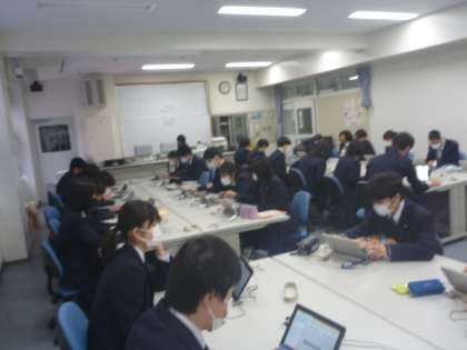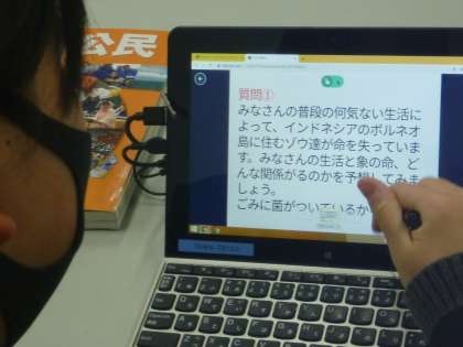 「国際社会」の問題について、ロイロノートで授業を行っています。