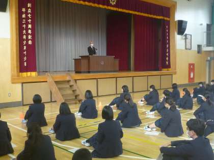 校長先生からは、「思いや願望だけでは、それはかなわない。そこに向けて努力することが大切である」と、感染症予防を徹底しましょう等のお話がありました。