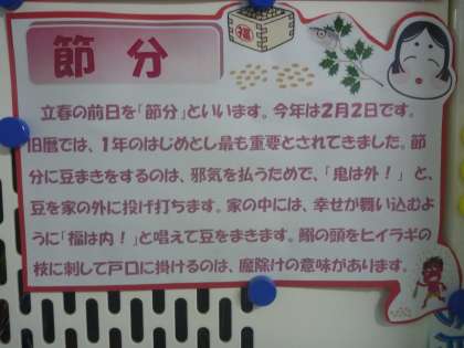 玄関の前に、今日の「節分」のことが詳しく書かれたものが。