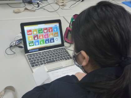 2年生の総合的な学習では、ロイロノートを使って、気になる「SDGs」を探して、これから、各自レポートにまとめます。