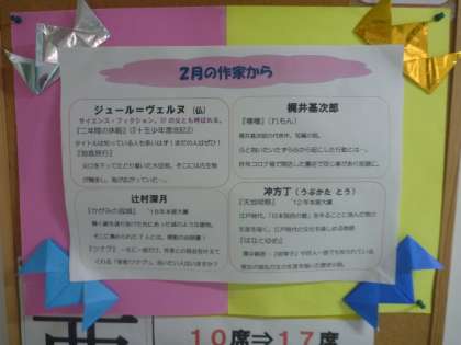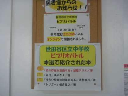 1階の廊下に掲示されています。 ビブリオバトルのチャンプ本読んでみませんか?
