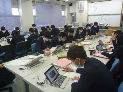 環境問題について、それぞれ調べています。原因は何か?私たちが出来ることは何か?など、これから英語でレポートにまとめるようです。