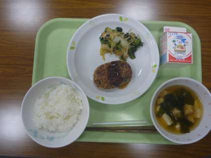 ご飯・みそ汁・きんぴらコロッケ・煮びたし・牛乳です。