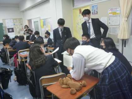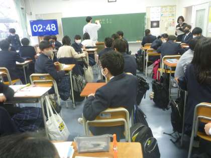 豊臣秀吉の天下統一について、グループで意見を出し合っています。
