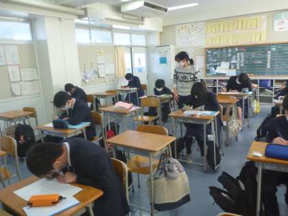先生たちに、各自解説をしてもらいながら、式の計算等のプリントを行っています。