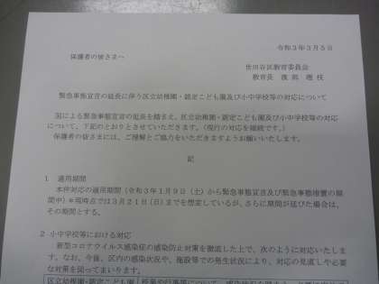 緊急事態宣言の延長に伴う区立幼稚園・認定こども園及び小中学校等の対応について