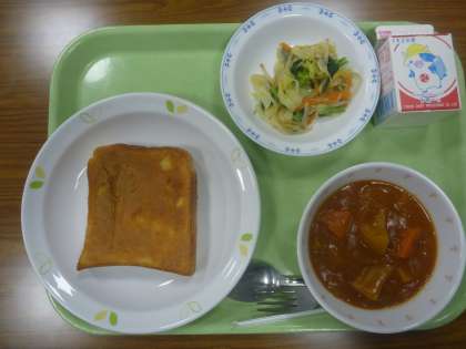 きな粉バタートースト・ポークシチュー・野菜サラダ・牛乳です。