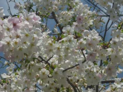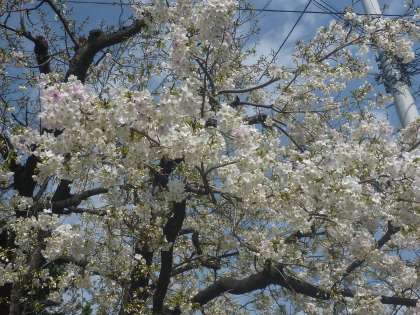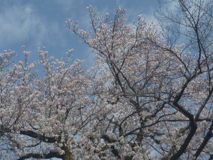 昨日の嵐にも負けず、校舎裏の桜がこんなに綺麗に花を咲かせています。