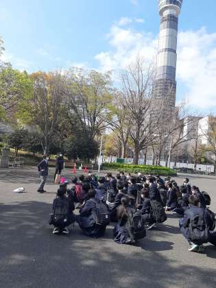 まずは、山下公園石舞台の前でミッションの説明を聞いています。