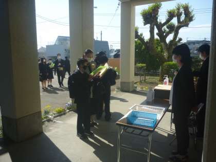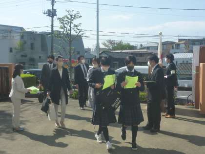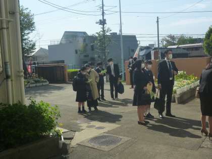 新入生が保護者の皆さんと続々受付にいらしてます。