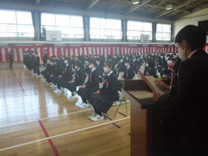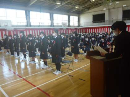 校長先生も壇上から、76名の新入生一人一人に温かいまなざしを。