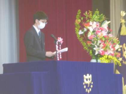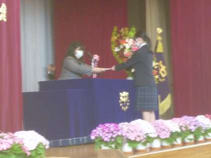 1年生の先生の紹介。PTAからの記念品贈呈。在校生歓迎のことば。