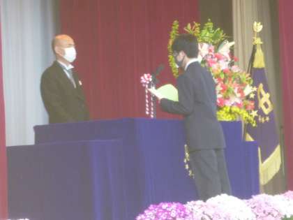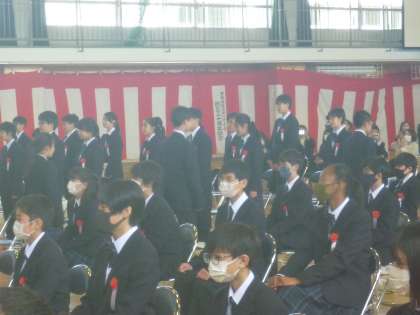 新入生誓いのことば。校歌斉唱。新入生退場。