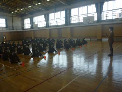 2年生は体育館で、2年生になってこんなことを頑張ろうという話を真剣に聞いています。