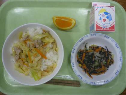 ねぎ塩豚丼・ひじきのピリッとサラダ・清見オレンジ・牛乳です。