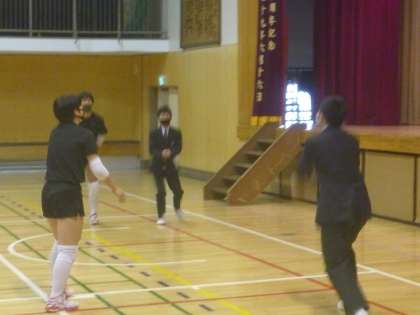 バレー部が1年生に「飛び入り参加しませんか?」という呼びかけに、すぐにやりたい生徒が数人出てくれました。