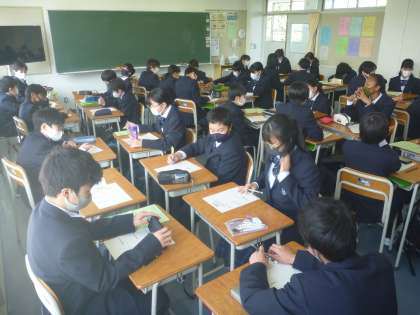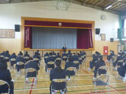 3年生は、進路についての話を聞いています。