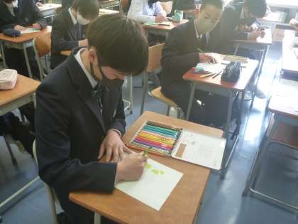 1年生は、班目標を班ごとに話し合いをしています。