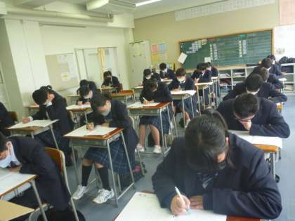 今日は、2時間目から区の「学習習得確認調査」を行っています。