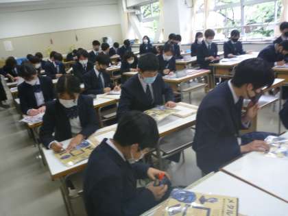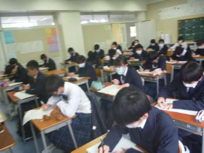 理科は、1年生の復習テスト42点満点。「みんな満点ね」の声に、ピースしてニコニコ。楽しみです。