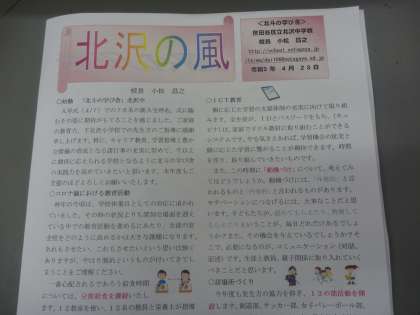 本日、学校だより「北沢の風 4月号」を生徒に配布しました。