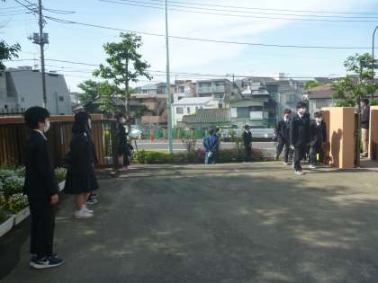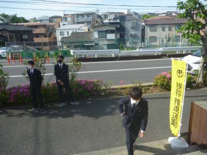 今朝も8時に生徒会役員と生活委員が正門と1年生昇降口で、元気よく「おはようございます」とあいさつ運動をしていました。