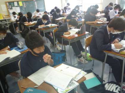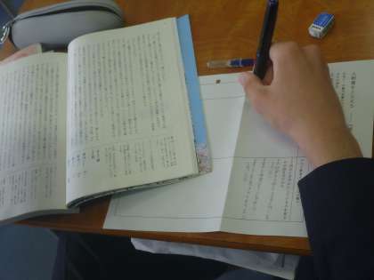 3年生国語は、井上ひさしの「握手」ので、各自教科書の本文を読み、「人物像をとらえる」で、書きだしています。