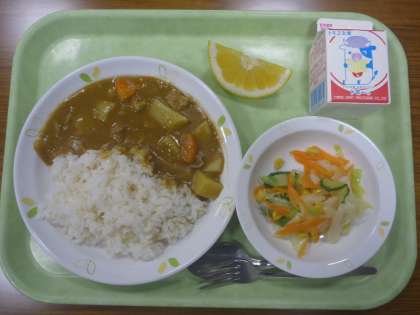 ポークカレーライス・フレンチサラダ・河内晩柑・牛乳です。