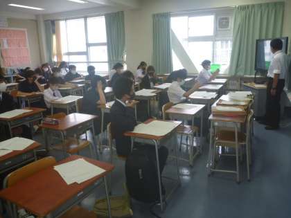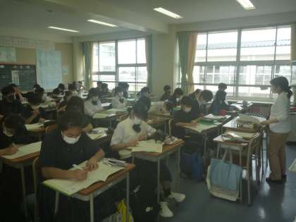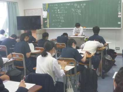 昨日までの中間テストが返却され、正解の解説を行っています。