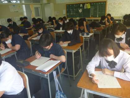 週に1回、10分間で、新聞の記事を読んで、要約したり、いくつかの質問に回答を記入します。後日、添削されて戻ってきます。ちょっと難しいですが、真剣に取り組めば、国語力のアップにつながります。頑張れ〜!