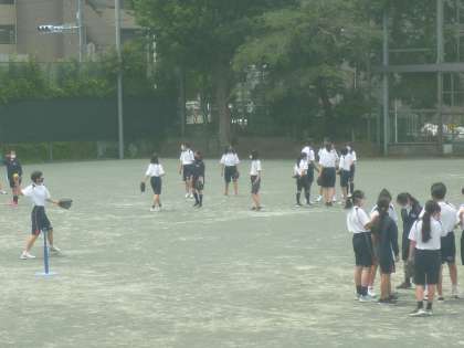 1年生 女子体育 公開日 2021/05/24 更新日 2021/05/24 できごと 校庭でソフトボール。向かい合ってキャッチボールをしていますが、取れなくて、ボールが遠くまで転がり、何回もで疲れたとニコニコ歩きながら、ボールを取って、元の場所へ。 隣では、チームに分かれて、これから試合のミーテイング。